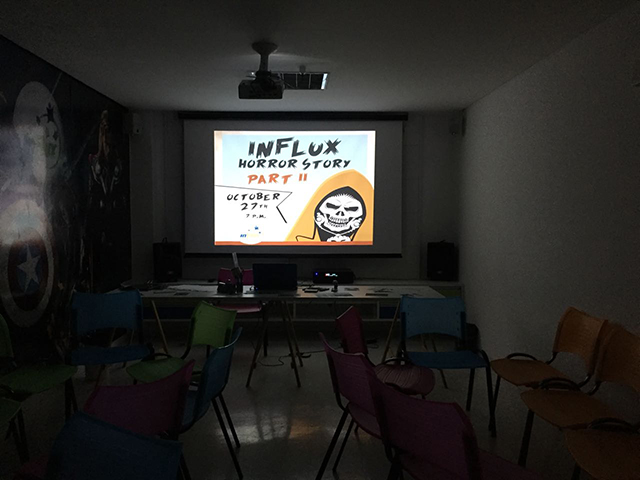 Quem participou da nossa inFlux Horror Story Part II, se tornou detetive por uma noite e teve a oportunidade de desvendar o sequestro do Fluxie. Fizemos várias salas com ambientes misteriosos e assustadores, onde os alunos recebiam dicas a respeito do sequestrador, dos últimos lugares onde o nosso mascote foi visto e também possíveis hipóteses sobre a real história. Após essa jornada, os detetives tiveram que criar uma teoria e então saáram pela escola em busca do nosso querido Fluxie!