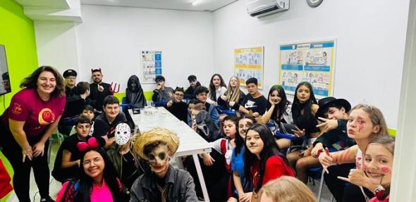 A inFlux Indaial realizou uma atividade extra divertidíssima de Halloween! Alunos do Fluxie and Friends ao Book 5 participaram, sendo Kids, Teens e Adults onde foi dividido os horários conforme a faixa etária dos alunos e amigos convidados.