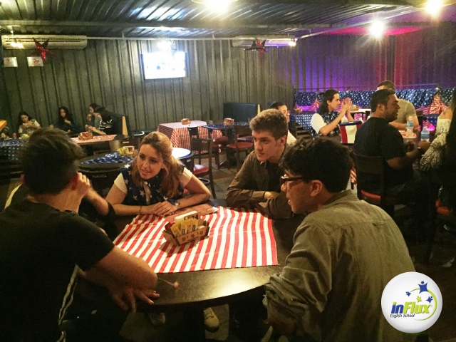 Nossos alunos tiveram a oportunidade de praticar inglês em uma situação real e ainda bater papo ao som de uma boa música com nossos teachers.