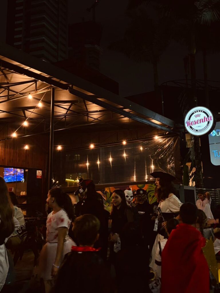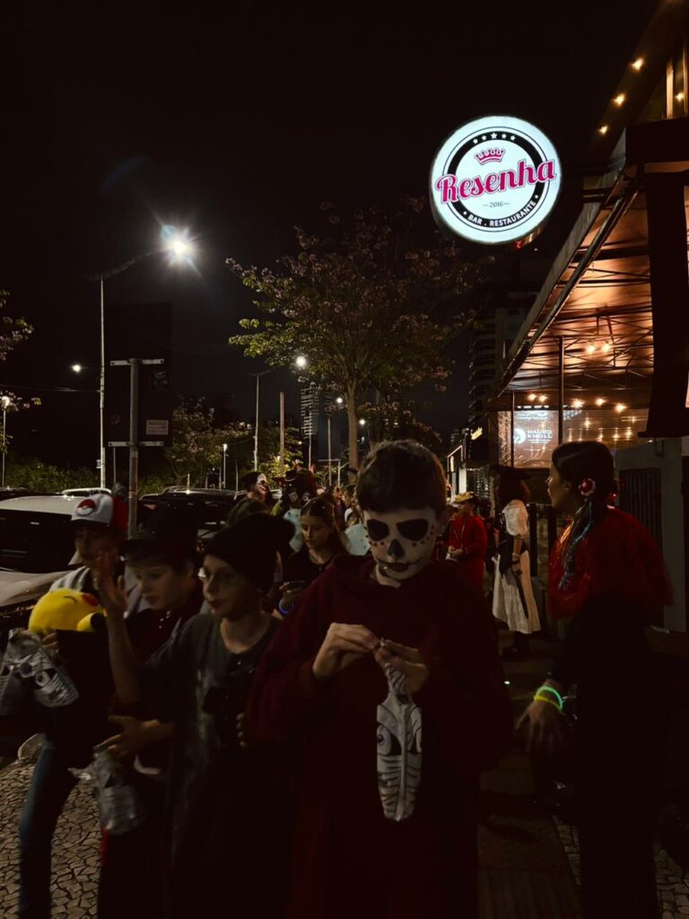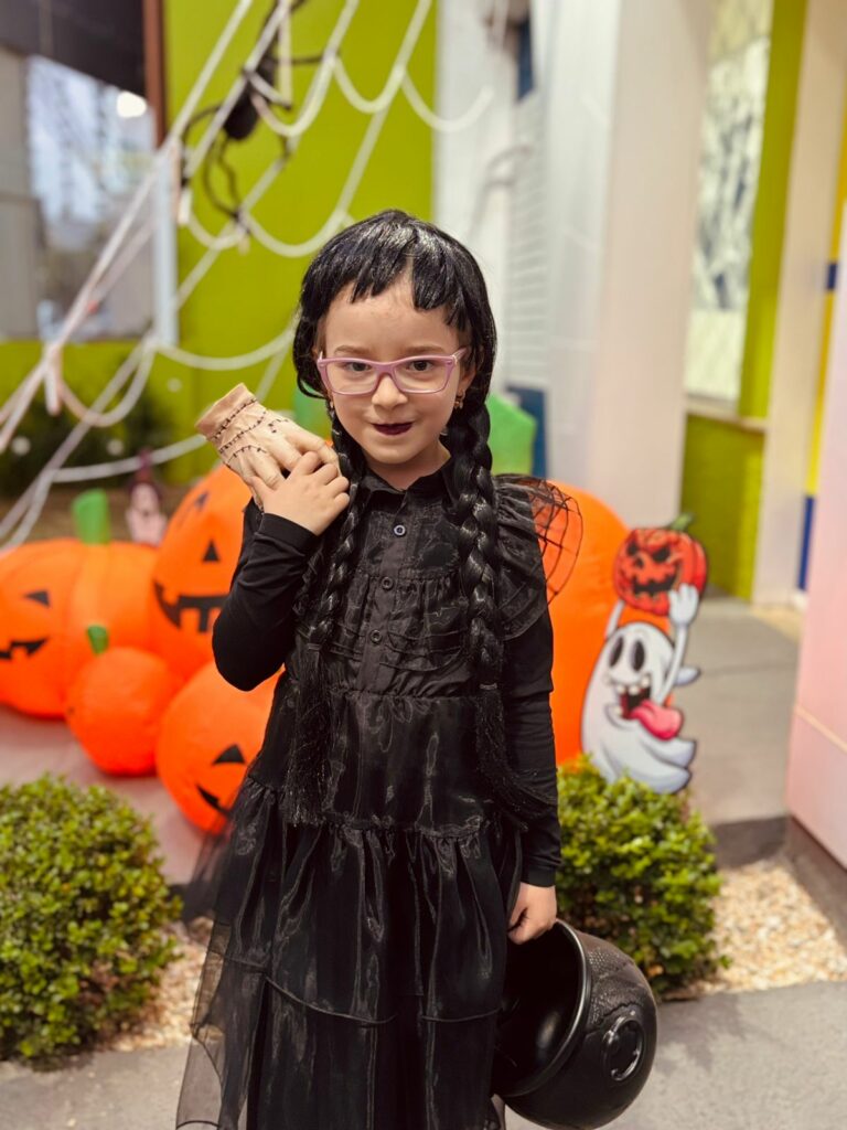 As crianças se divertiram tentando acertar o chapéu da bruxa na brincadeira Witch Hat Ring Toss, participaram do Trick or Treat nos restaurantes vizinhos, dançaram no Just Dance e aproveitaram diversas atividades cheias de alegria e imaginação.