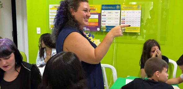 Foi uma tarde de muita interação, com diálogos e atividades que tornaram o aprendizado ainda mais leve e natural. Além de se divertir, os alunos puderam reforçar o vocabulário com chunks essenciais para o dia a dia em um ambiente super informal.