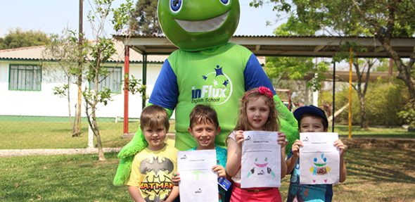 Distribuímos brindes, os alunos puderam tirar foto com o Fluxie que fez a alegria da criançada, e além disso, realizamos um concurso de melhor pintura do nosso querido mascote.
