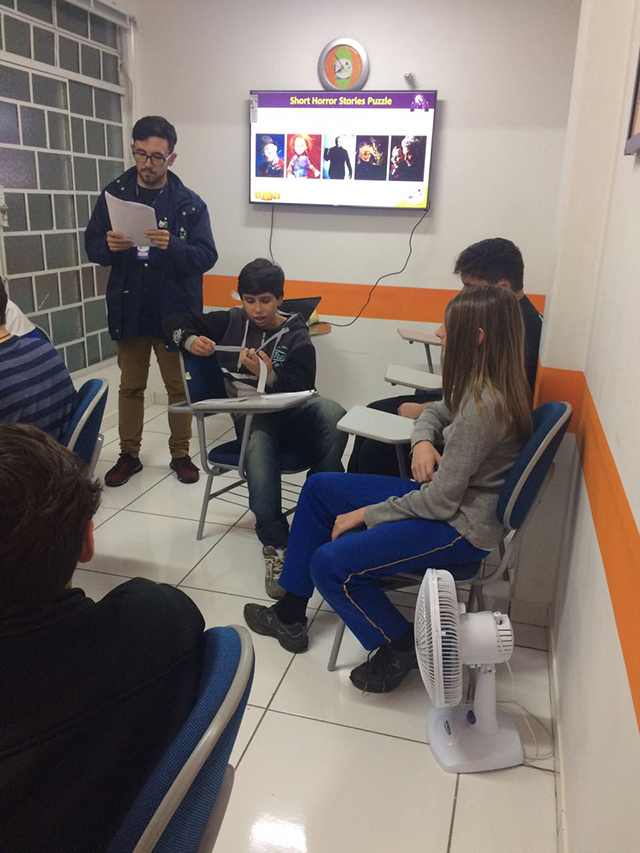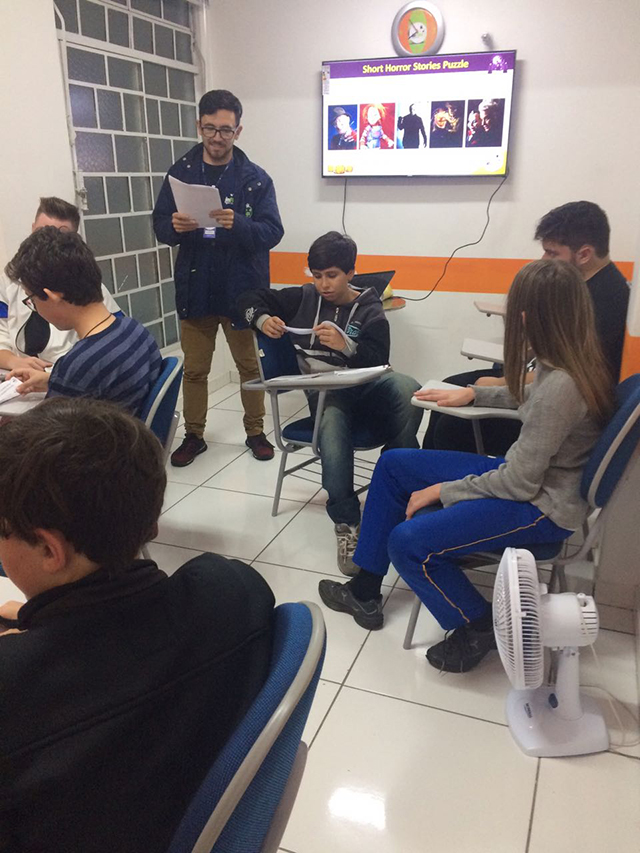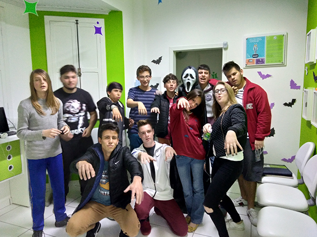 Still about October… Na sexta-feira, dia 27 de outubro, os alunos da inFlux Lapa participaram da atividade Halloween Storytelling, na qual todos se ajudaram para contar uma história de terror em inglês com direito a muito suspense, comédia, e até sonoplastia ao vivo. Além de outras atividades em que puderam aprender vocabulário novo e praticar o idioma.