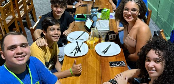 A proposta foi conversar em inglês sobre gostos pessoais, hobbies, comidas favoritas, filmes, séries e muito mais.