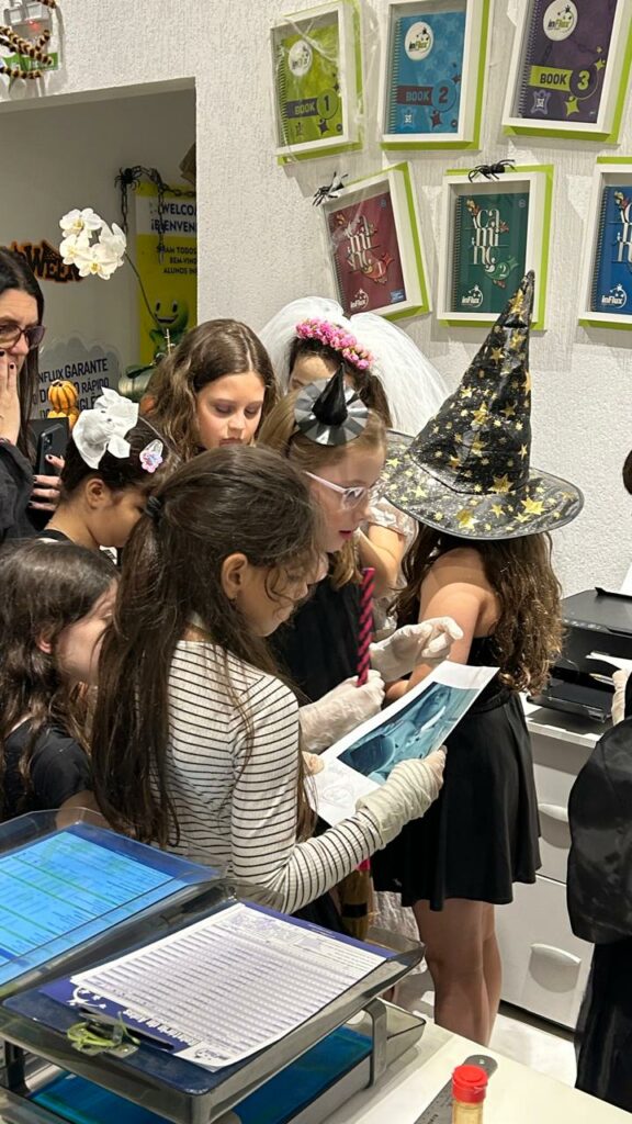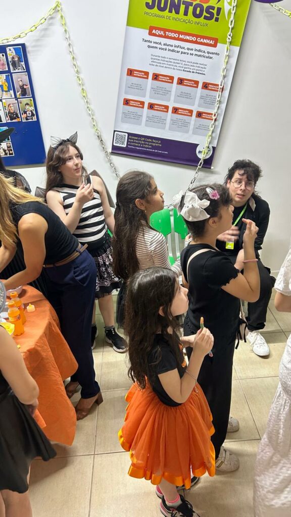 Na inFlux Londrina Dom Bosco, aprender faz parte até dos momentos de diversão. Os alunos das turmas Kids e Juniors capricharam na fantasia e na animação para participar de uma atividade especial de Halloween.
