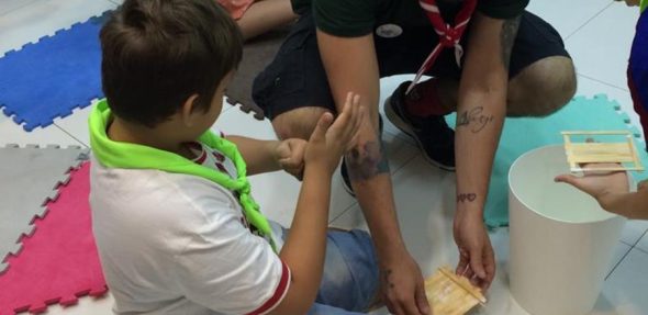 Os alunos puderam ver um pouco de como é ser escoteiro em atividades com muitos chunks!