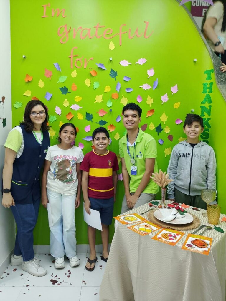 Foi também uma ótima oportunidade para trabalhar o chunk “I’m thankful for…”, ajudando os alunos a expressar gratidão em inglês de maneira simples e significativa.