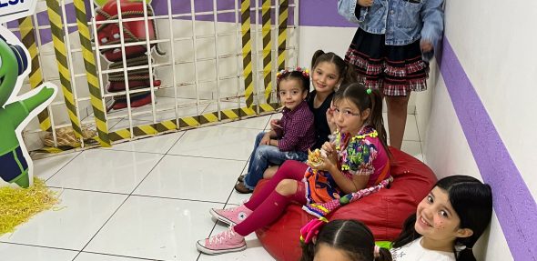 Na sexta feira foi feita a atividade extra do mês de junho, através dessa festa cultural os alunos tiveram a oportunidade de emergir no idioma através da diversão e das brincadeiras.