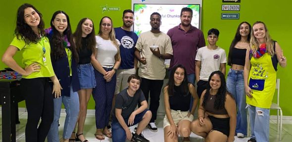 Durante a atividade, os participantes tiveram a oportunidade de ampliar seu vocabulário ao conversar sobre lazer, passatempos e preferências para os dias mais quentes. Para tornar a experiência ainda mais envolvente, o evento foi um grande sucesso, proporcionando uma forma interativa e divertida de aprendizado.