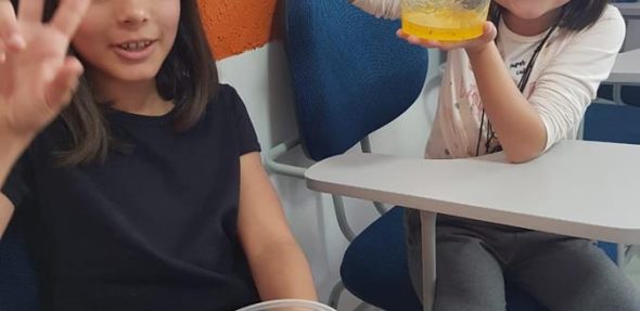 Os alunos kids e juniors puderam se divertir e brincar confeccionando seu slime e aprendendo inglês. Esta foi uma atividade extra de férias e os alunos e não alunos puderam levar os seus slimes para casa.