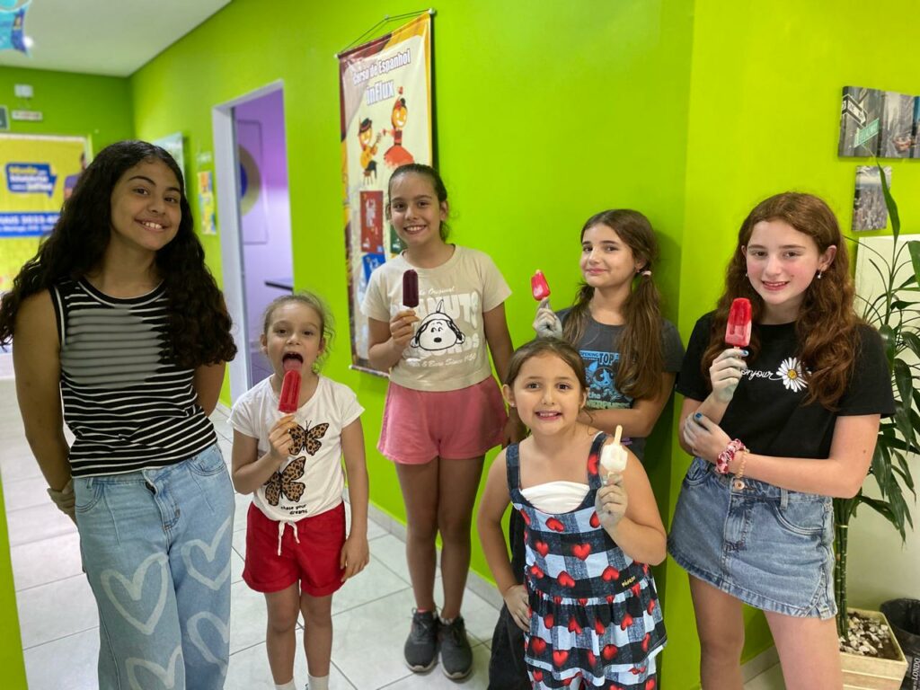Colocaram a mão na massa para criar sua própria areia mágica, testaram seus sentidos ao adivinhar sabores de picolés vendados e se desafiaram em um divertido jogo de mímica com tema de verão. Para encerrar com muita energia, participaram de uma animada guerra de bexiga d’água e banho de chuva, garantindo muitas risadas e momentos inesquecíveis.