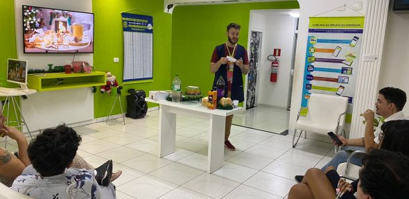 A ceia de Thanksgiving, e a noite de Ação de Graças já começou com um divertido Quizz para que cada participante pudesse descobrir suas personalidades e atitudes num jantar de ação de graças e foi divertido ver a reação de cada pçarticipante ao descobrir que estariam lá apenas pela comida ou são obcecqados por preparar tudo perfeitamente para que nenhum detalhe escape nesta noite tão especial. Aprendemos fatos sobre a origem e formas de celebração do Thanksgiving em um jogo de Verdade ou Mentira que fez os participantes raciocinarem bastante para tentar descobrir se as declarações apresentadas eram corretas ou não. Terminamos a noite com os participantes criando a mais emocionante e criativa estória de ceia de Thanksgiving com direito a um Peru vivo que fugiu do forno antes de ser assado e muito mais antes de partirmos para a ceia com os pratos mais deliciosos trazidos pelos participantes.