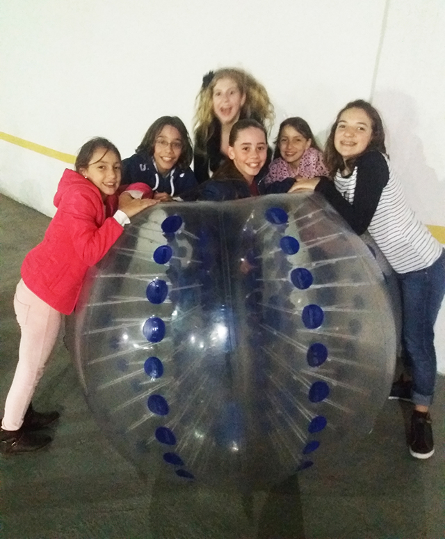 Tivemos várias atividades, incluindo torta na cara com perguntas em inglês e a atração maior ficou por conta do Futbolha.