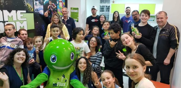 Na noite, a inFlux celebrou o Dia dos Pais com uma edição especial do “Face the Pie”, um divertido jogo de perguntas e respostas. Pais, filhos e responsáveis entraram na brincadeira, testando seus conhecimentos de inglês e, claro, tentando escapar de uma torta na cara!