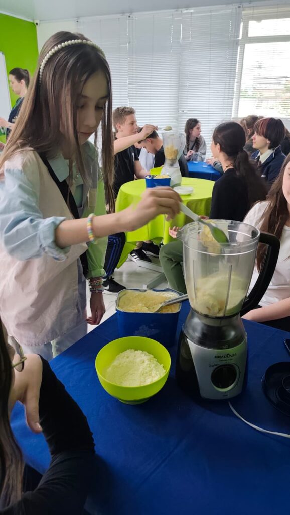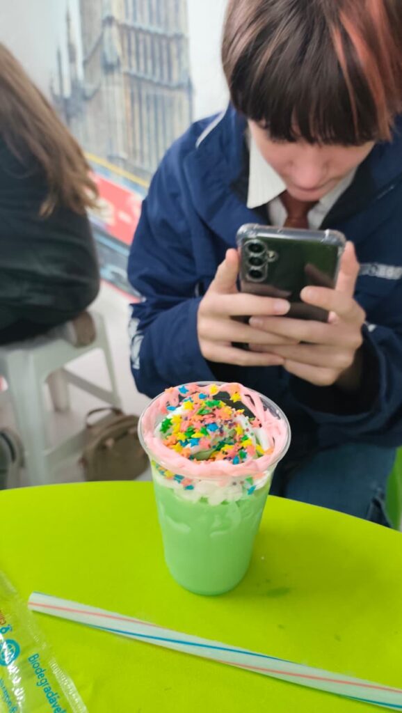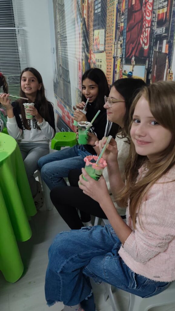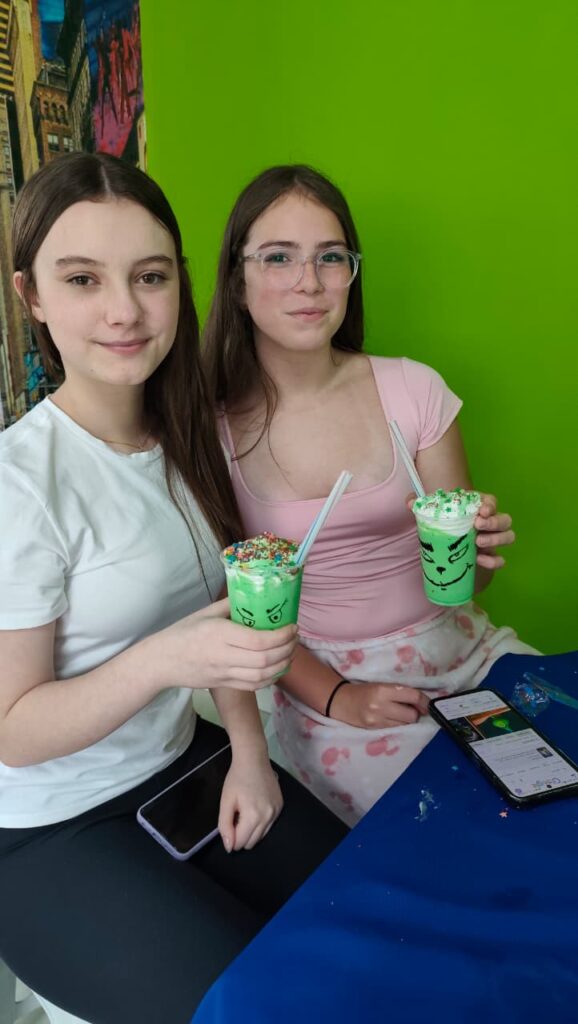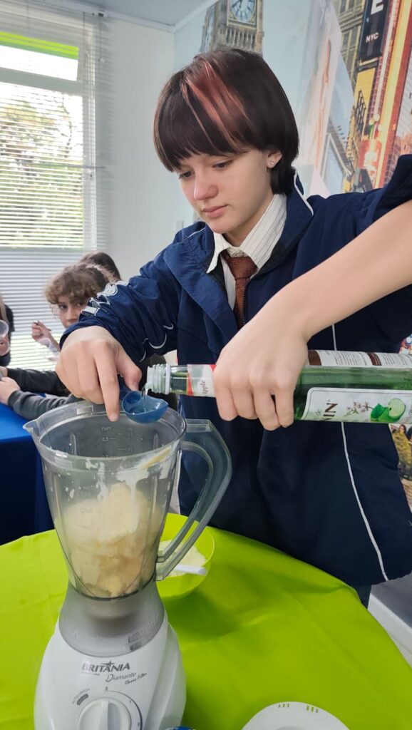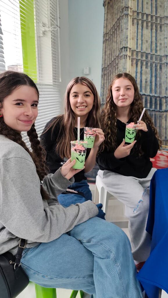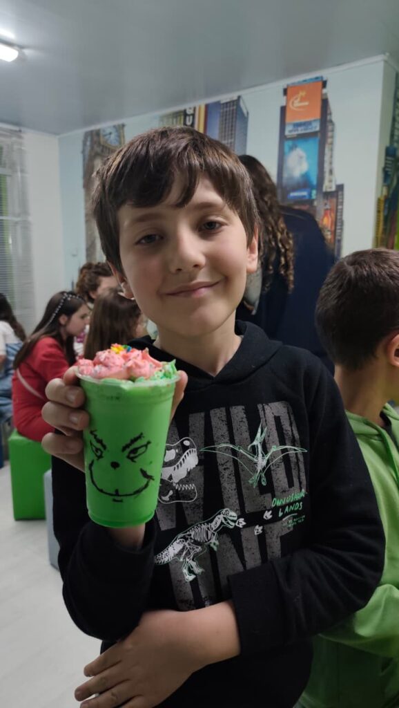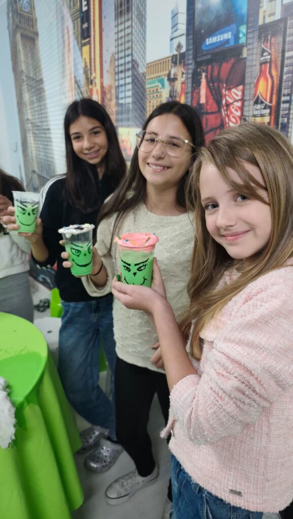 E não parou por aí. Depois, os alunos aprenderam a preparar e se deliciaram com um Milk Shake do Grinch, uma receita que está em alta nas redes sociais.