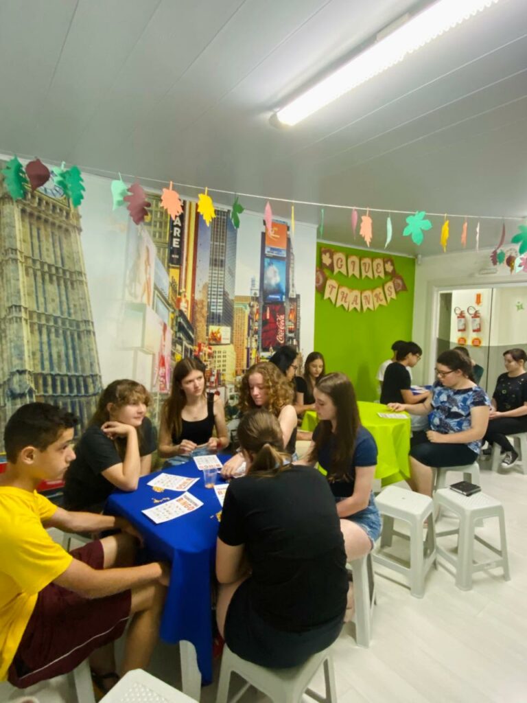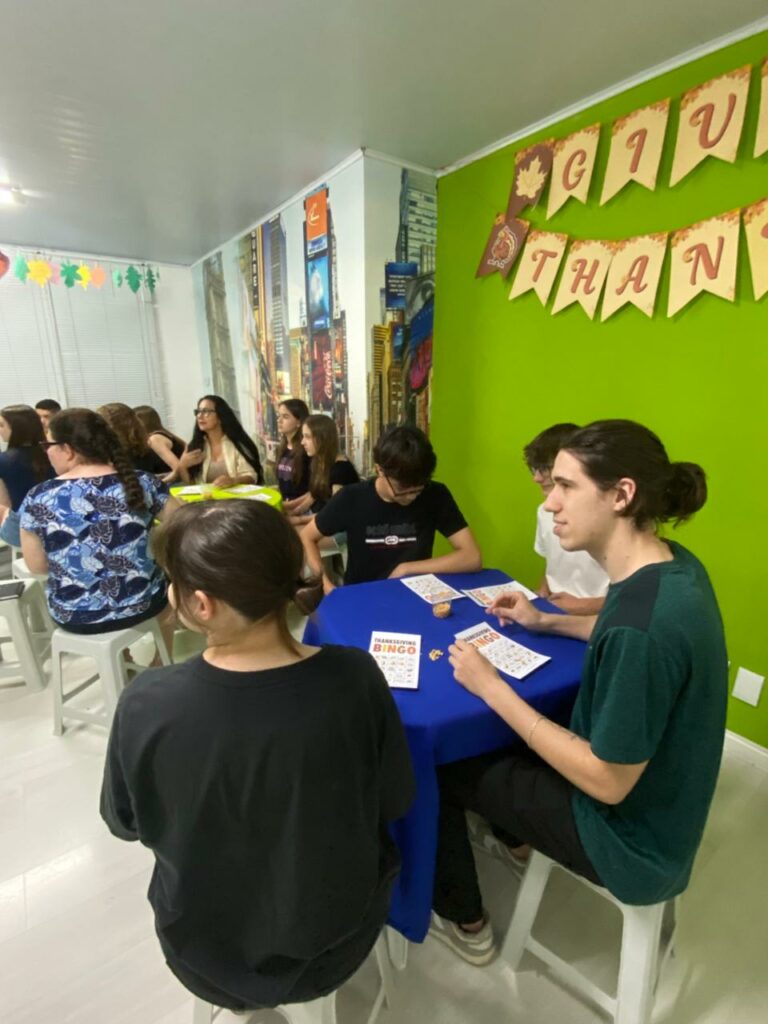 Durante a atividade, os alunos exploraram elementos da cultura americana, praticaram vocabulário em inglês de forma natural e ainda se divertiram com um bingo temático que tornou a experiência ainda mais envolvente.