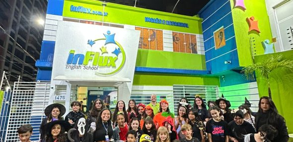 Noiva-cadáver, pânico, anjinho, Shark Boy e Lava Girl, Spider Man, bruxas… A inFlux Praia da Costa foi invadida pelas personagens mais assombrosas da história da escola!
