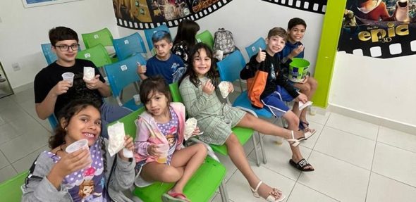 O último evento foi uma típica Movie Session Americana com direito a pipoca, sucos e refrigerante! Os alunos tiveram “the full experience” de como ir ao cinema americano, e praticaram em inglês na hora de comprar os seus ingressos e pedir comida no “concession stand”. O filme escolhido foi “Turning Red” e essa atividade extra foi ótima pois todos estavam muito animados para ver esse filme da Disney.