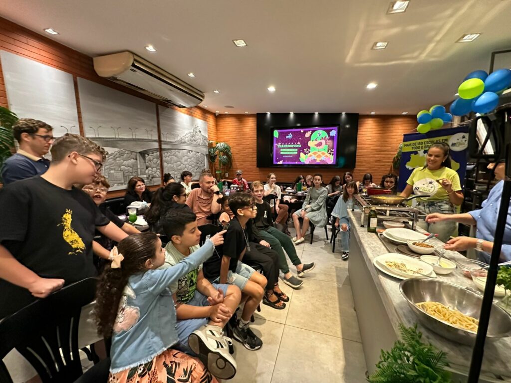 Todos foram convidados a compartilhar frases de gratidão por este ano de 2025, mencionando família, amigos, escola e os aprendizados. Um momento especial que uniu diversão, prática de inglês e o verdadeiro espírito do Thanksgiving: união, agradecimento e convivência.