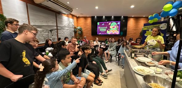 Todos foram convidados a compartilhar frases de gratidão por este ano de 2025, mencionando família, amigos, escola e os aprendizados. Um momento especial que uniu diversão, prática de inglês e o verdadeiro espírito do Thanksgiving: união, agradecimento e convivência.