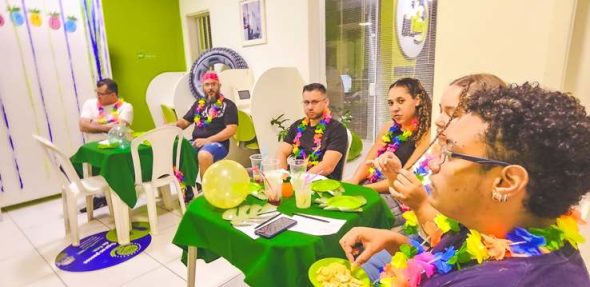 Durante a atividade, os participantes puderam desfrutar de jogos, muito inglês, petiscos e bebidas com e sem álcool.