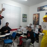 A segunda atividade foi para aprender a reconhecer os Pokémons em inglês. Ainda divididos em equipes, os professores colocaram um vídeo que perguntava “Who’s that Pokémon?” e os alunos tinham que responder também em inglês. A equipe com maior número de acertos foi a vencedora da turma.