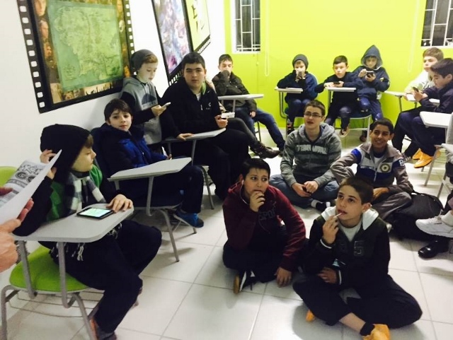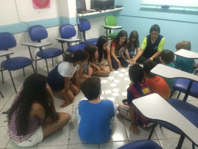 A ação foi dividida em três etapas. Na primeira delas, como existem várias palavras em inglês no jogo, os professores apresentaram o vocabulário para que os alunos repetissem e depois deram o significado das palavras em português. Para reforçar o aprendizado, na sequência, dividiram as turmas em equipes e distribuíram um jogo da memória.