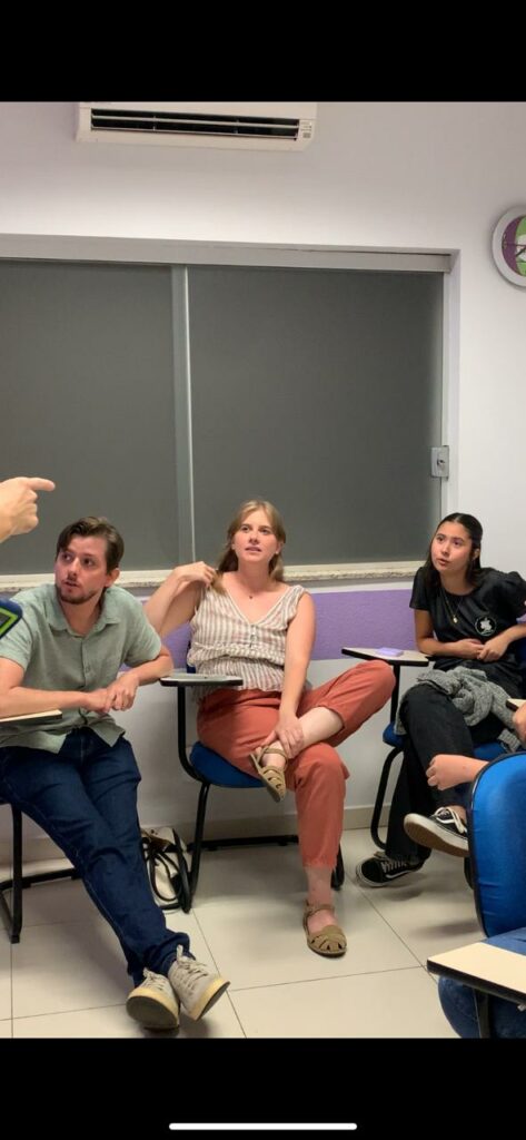 Durante a atividade, os alunos participaram de uma competição de verdadeiro ou falso, de um quiz para descobrir quem cada um seria em um jantar de Thanksgiving e da solução de situações absurdas e hilárias, além de uma contação de histórias conjunta, que tornou o momento ainda mais divertido.