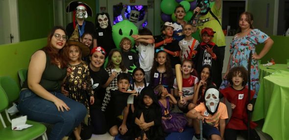 Entre as fantasias mega criativas e assustadoras, os kids tiveram que ter muito fôlego para ganhar a corrida das aranhas, acertarem na mira no jogo do Acerte o chapéu e dançarem muito com a participação especial do DJ Marshmello!
