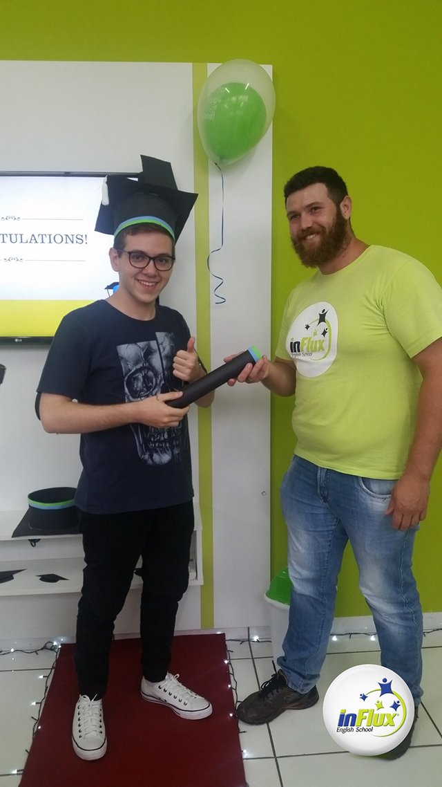 Em dezembro de 2018, os alunos da inFlux Santa Cruz do Rio Pardo se sentiram realizados em pegar o diploma do seu nível avançado de inglês, após a conclusão do curso regular nesta unidade.