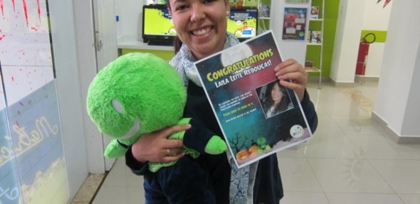 A tradicional brincadeira da abóbora movimentou a recepção durante o período de Halloween. Os alunos tinham de adivinhar quantas sementes havia dentro de uma abóbora colocada na bancada da recepção. Caso ninguém acertasse o número exato de sementes o aluno que chegasse mais próximo, sem ultrapassar, seria o vencedor. Após muitos palpites e cálculos meio malucos de vários alunos,a abóbora foi enfim aberta para revelar-se o grande vencedor. A sortuda da vez foi a aluna Laila Leite Rebouças que, com um palpite de 170 sementes, quase acertou em cheio as 171 sementes encontradas na abóbora. Parabéns Laila e aos demais alunos que participaram da brincadeira com muita animação!