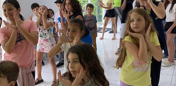 Durante a atividade, os alunos receberam orientações sobre passos de dança em inglês, além de praticarem a audição e a pronúncia das músicas, tudo com muito movimento e diversão.
