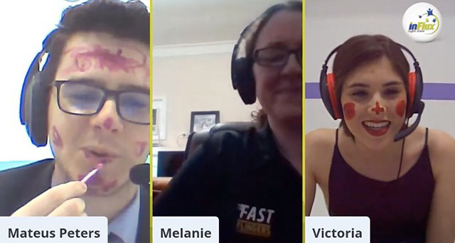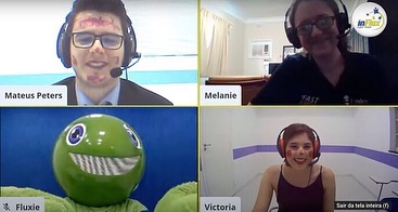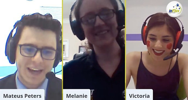 A inFlux São Carlos realizou a atividade extra inFlux Friday Night Show com o teacher Mateus Peters que foi feita on-line, em um ambiente super descontraído e totalmente em inglês com duração de 1 hora. Deste talk show participaram a australiana Melanie, também a teacher Vicky, nosso mascote Fluxie e os ilustres alunos Lygia e Marcel.