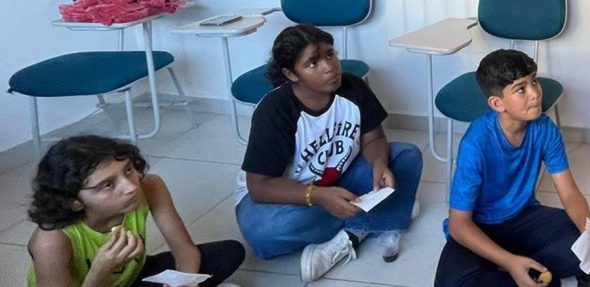 No final da sessão de cinema, as turminhas praticaram os conhecimentos conquistado nas salas de aulas durante o semestre com um quiz cujas perguntas forma baseadas no filme que acabaram de assistir.