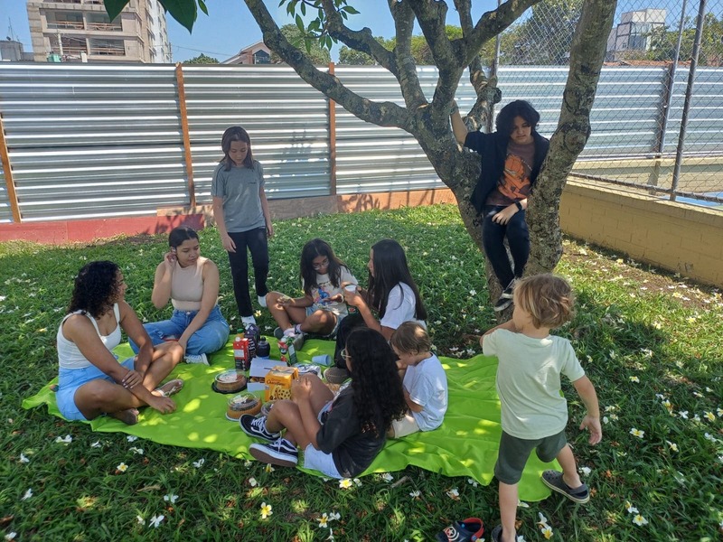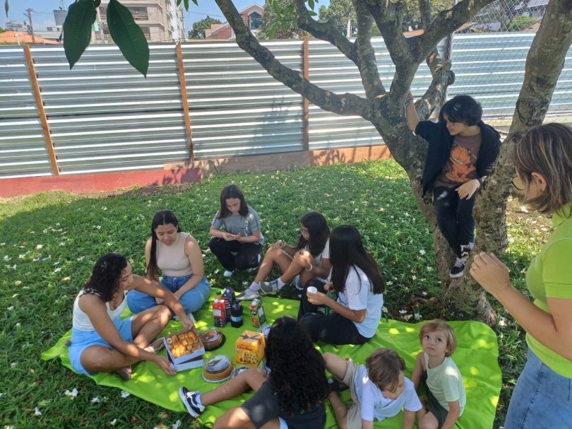Na Atividade Extra, os alunos prepararam um piquenique coletivo, jogaram flag football e aproveitaram cada momento para praticar o inglês de forma leve e espontânea. Ao longo das atividades, surgiram expressões do tema como “I’m thankful for…”, além de frases como “that made my day”, “such a great moment” e “I appreciate it so much”, tornando a experiência ainda mais significativa.