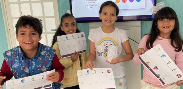 Com a ajuda do filme Inside Out, as crianças desenvolveram um pouco de suas inteligências intrapessoais e interpessoais, enquanto se divertiram e aprenderam novos chunks praticando o inglês!