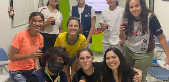 Praticando chunks, os alunos realizaram atividades relacionadas ao tema, demonstrando entusiasmo em sua participação. Foi muito divertido, e a bebida natalina preparada pelos alunos, a Eggnog (gemada) também estava maravilhosa!