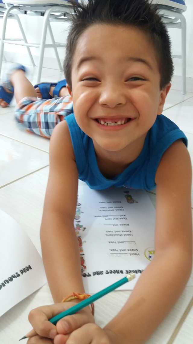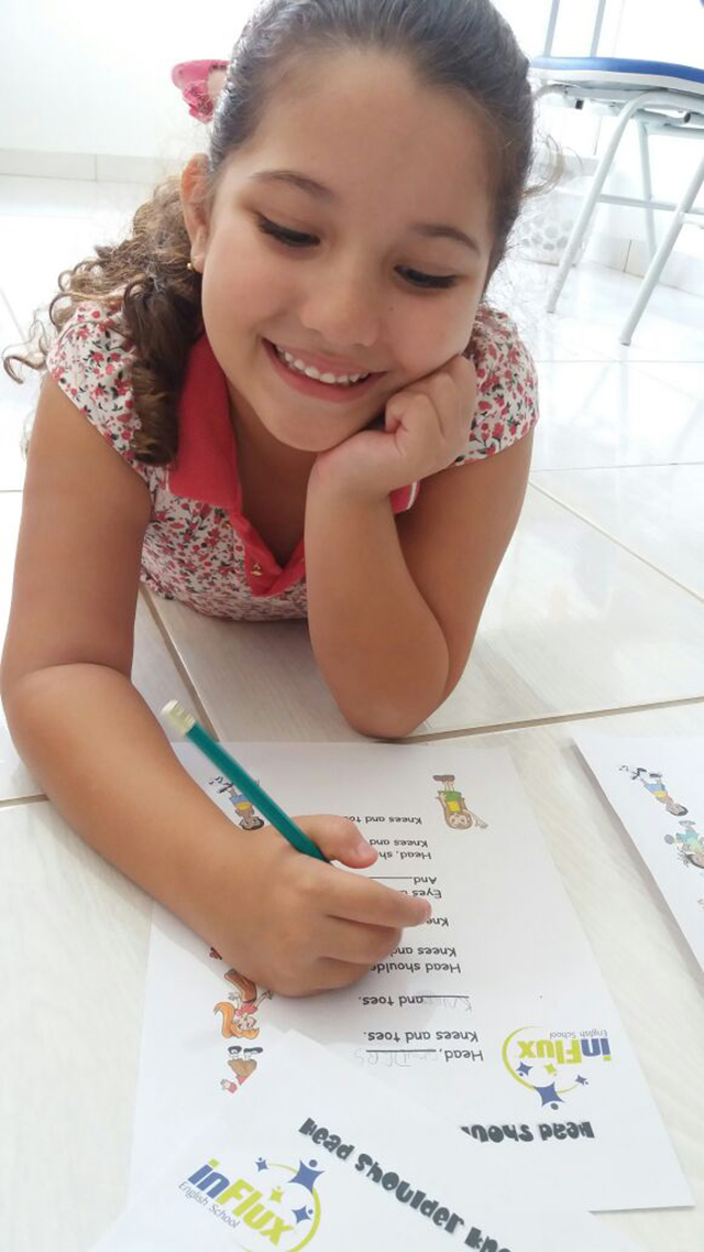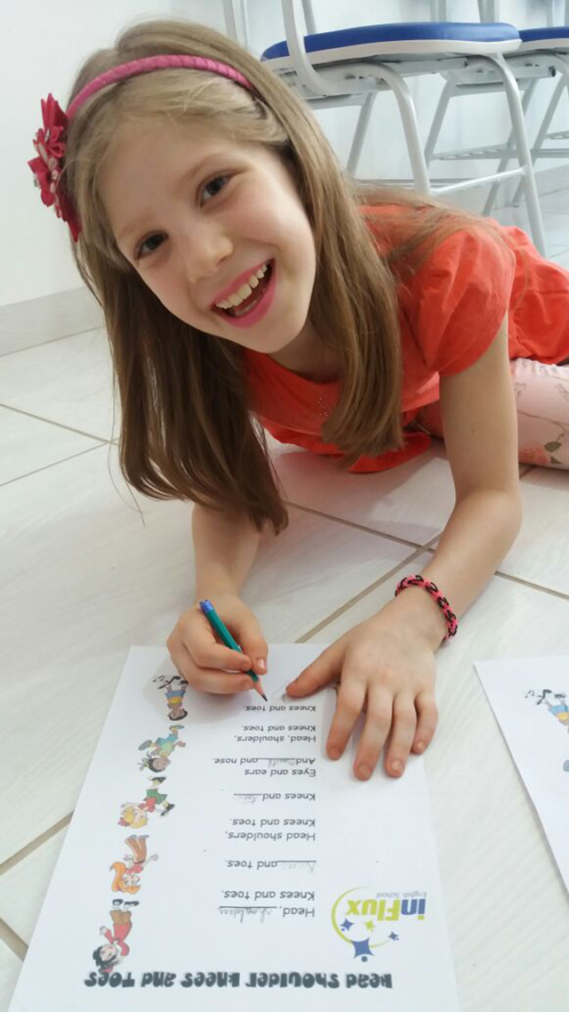 Através da música “Head, shoulder, knees and toes” tivemos uma atividade, o “Fill in the gaps” em que eles puderam identificar as expressões e palavras que faltavam e preencher os espaços em branco.