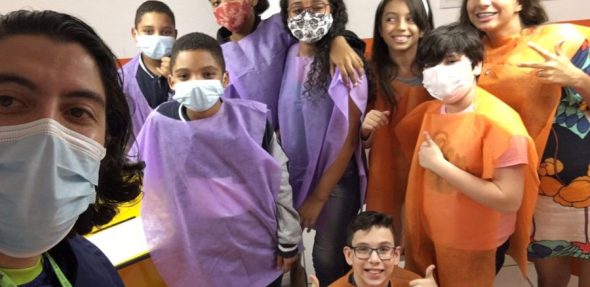 Participaram também de outros desafios, como Paper Folding Challenge e Whisper Challenge. Todos aprenderam palavras, chunks e expressões novas com muita diversão.