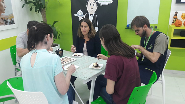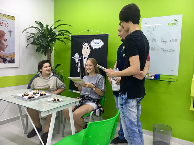 Os alunos do módulo Traveler da inFlux Indaial puderam colocar em prática como chegar em um restaurante, pedir a mesa, pedir seu cardápio e degustar um delicioso brownie com sorvete, sempre fazendo uso da metodologia própria da inFlux, que une as duas mais fortes metodologias de ensino, a comunicativa e a lexical.