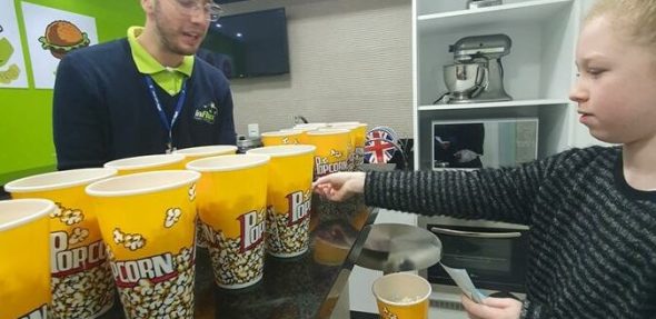 Nesse dia, os alunos puderam trazer seus amigos para a escola e ter uma experiência genuína de como é ir ao cinema, desde a compra do ticket até a visita ao Concession Stand, lugar onde puderam comprar pipoca, refri e docinhos!