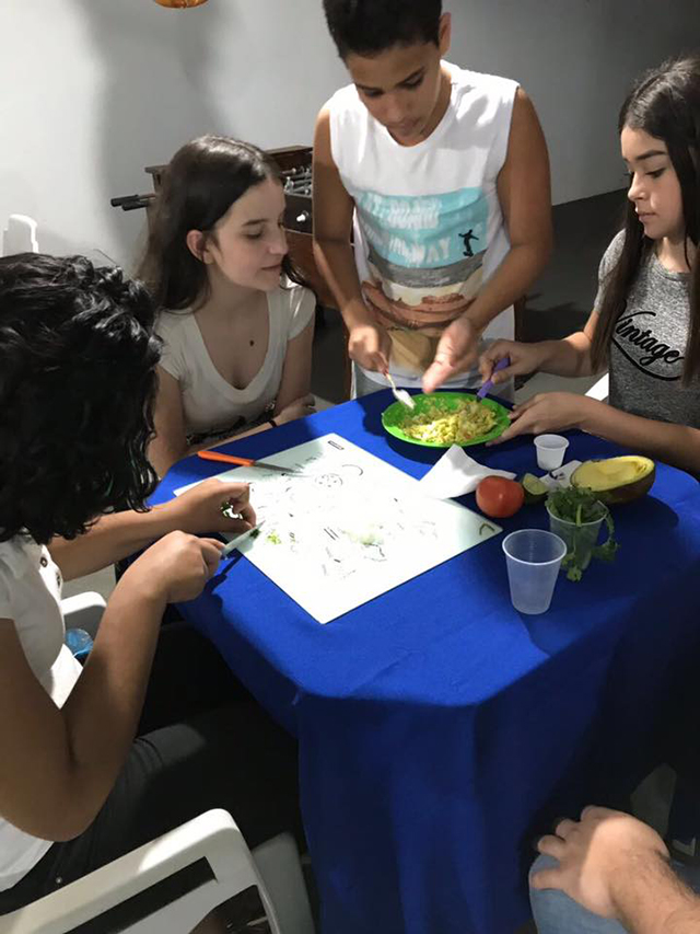 Eles também aprenderam um pouco sobre a origem do guacamole, sua receita e puderam prepará-lo nos mínimos detalhes e, claro, experimentaram esse delicioso prato mexicano.