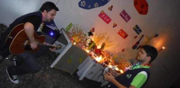 Aloha guys!! Na sexta-feira passada, 03/10, tivemos o Luau inFlux Joinville Norte. Em clima de festa com música e descontração, os alunos tiveram uma noite muito especial. Um lindo e delicioso banquete de frutas foi servido e o embalo musical ficou por conta dos teachers Diogo, Renata e William que tocaram músicas típicas e rocks conhecidos. Todos comeram marshmallows ao redor da fogueira, participaram das brincadeiras e ainda aprenderam algumas palavras em Havaiano!