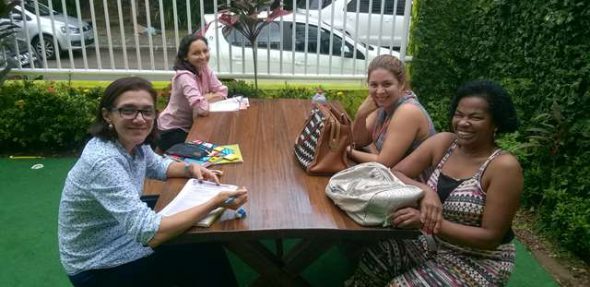 O jardim da unidade inFlux Salvador recebe as mães todas os dias em todos os horários. Elas curtem muito esse cantinho aconchegante. Aqui, elas trocam experiências e falam sobre o aproveitamento dos filhos no curso e sobre outros temas.