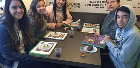 Nas últimas semanas, os alunos estavam praticando situações de um restaurante, fazendo pedidos, pagando a conta e etc. Para que os alunos aprendessem de maneira ainda mais real e “doce”, na sexta-feira, 27 de maio, enquanto faziam uma simulação em um restaurante, os alunos puderam escolher suas sobremesas entre duas opções: chocolate cake and lemon tart.