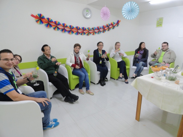 O início da noite já foi pra lá de animada, com uma dose especial de Mojito, bebida típica cubana, que foi preparada pelos próprios alunos, com auxílio do nosso professor Rodrigo Sprea, Venezuelano, que conhece bem a preparação e a história dessa bebida clássica.
