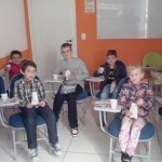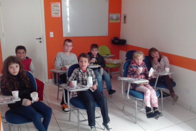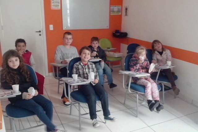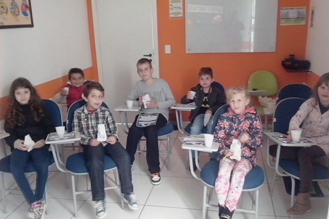 Além de se deliciarem com vários quitutes, e se divertirem assistindo o filme, todos os alunos tiveram mais uma chance de praticar o Inglês e brincar em um bingo com frases do filme.