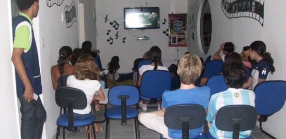 O filme foi exibido na nossa sala de cinema e tivemos muita pipoca e refrigerante.