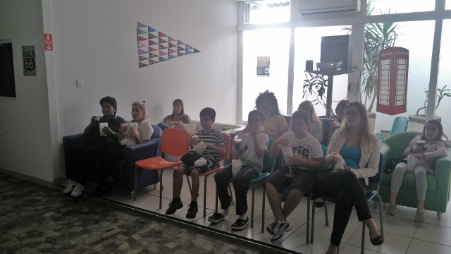 Durante as sessões rolou muita pipoca, refrigerante e atividades divertidissímas. Os alunos assistiram a ambos os filmes em inglês com legenda em inglês e português. Todos se divertiram e aprenderam muito.