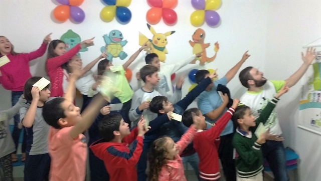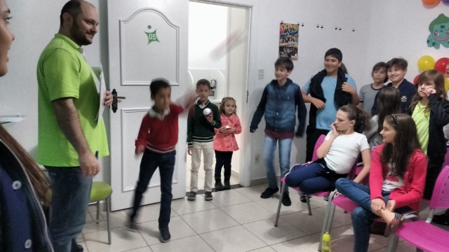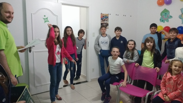 O evento reuniu a criançada para assistir dois episódios em inglês do desenho animado Pokemón. A sessão teve direito a pipoca e refrigerante, e todos acompanharam atentamente os episódios e depois responderam perguntas sobre os mesmos. E todos mostraram ser mestres no assunto!